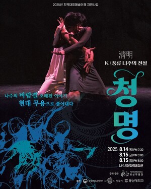 전라남도 나주시가 지역 고유의 문화유산과 전설을 현대 무용극으로 재창조해 시민과 관광객에게 선보인다. 시는 이번 작품을 통해 나주의 역사와 예술이 어우러진 품격 있는 문화콘텐츠를 창출하고 지역 예술단체의 경쟁력 강화와 문화 향유 기회를 넓혀갈 계획이다. 나주시(시장 윤병태)는 12일 문화체육관광부가 주관한 ‘2025년 지역대표 예술단체 육성지원사업’에 선정된 동신대학교 비상무용단이 창작공연 ‘K-풍류 나주의 전설 : 청명(淸明)’을 오는 14~15일 이틀간 나주문화예술회관에서 3회 공연한다고 밝혔다. 이번 작품은 나주 고유의 삼색유