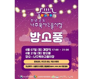 전라남도 나주시(시장 윤병태)가 7일 오후 5시 지역 대표 전통시장인 나주목사고을시장 광장에서 전통시장 활성화를 위한 ‘나주목사고을 밤소풍’ 개장식을 개최한다.‘나주목사고을 밤소풍’은 캠크닉(캠핑+피크닉)을 콘셉트로 한 나주목사고을시장만의 특별한 야시장 이벤트로서 이번 개장식을 시작으로 워터밤·맥주파티 등 다양한 콘셉트의 밤 소풍존이 10월까지 매월 1회 진행된다.이번 ‘나주목사고을 밤소풍’ 개장식은 7080 공연 및 트로트 공연으로 흥을 돋우고 더위를 날릴 수 있는 댄스파티와 각종 이벤트가 준비되어 있다.또한 아이들이 즐길 수 있