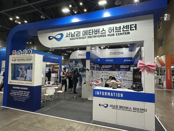 서남권 메타버스허브센터는 이번 전시에서 △체험존 △전시존 △홍보존으로 구성된 부스를 운영한다. 특히, 이번 체험존에는 ㈜펀잇이 참여하여 ‘이음 5G MEC 실증 사업’을 통해 확보한 AI 비전 기술을 융합한 실감형 XR 군사훈련 시스템을 초저지연·초고속 네트워크 환경에서 실시간 메타버스 체험 환경을 구현했다. 이를 통해 관람객은 네트워크 지연 없이 몰입감 높은 실감형 콘텐츠를 경험할 수 있었으며, 지역 혁신 기업의 기술력과 사업 성과를 국내외 산업 관계자에게 효과적으로 알렸다.
